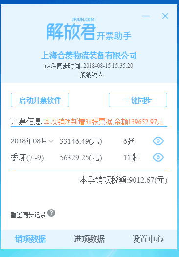 8.以上安装结束重新打开进销项助手,销项数据、进项数据、分别点一键同步即可。