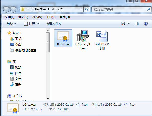 6.确认 安装目录文件中01.taxca具体请参照根证书安装手册